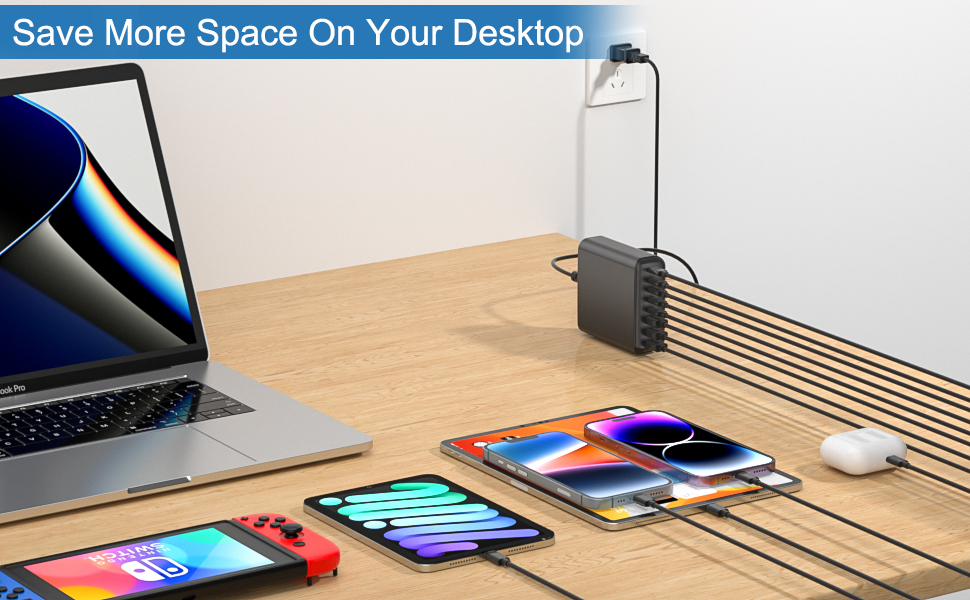 200W USB C Charger, 8-Port Desktop Charging Station, 65W Laptop Charger Compatible with MacBook Pro/Air,iPad Series,iPhone 14/13/Mini/Pro/13Pro Max/12 Samsung Galaxy Note